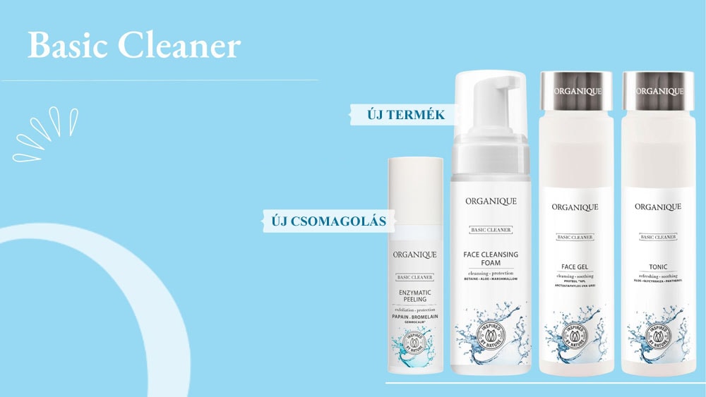 Az arctisztítás az egyik legfontosabb lépés a napi bőrápolási rituáléban. A tiszta, felfrissült bőr egyrészt szabadon lélegzik, másrészt sokkal hatékonyabban fogadja be a további ápoló készítményeket. Az Organique Basic Cleaner termékcsaládban minden megvan, amire a ragyogó és egészséges arcbőrnek szüksége van – az alapos tisztítástól a kíméletes hámlasztáson át egészen a bőr pH-értékének visszaállításáig.